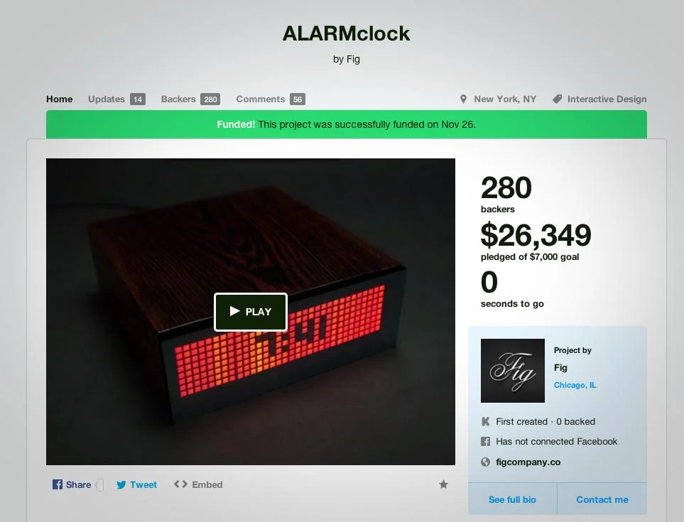 Conceived, designed, engineered, coded and manufactured entirely by our team, it was a lesson in bringing a product from idea to market. We exceeded our pledge goal by 3x and delivered 300 clocks to backers. Noted in Mashable, Engadget, Wall Street Journal, NPR and many more, including an incredulous 3 minutes on Howard Stern that lead to an immediate 10% bump in pledges.
